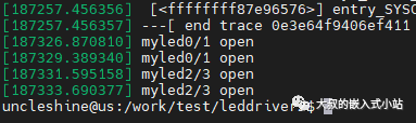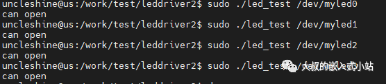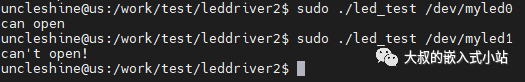 然后写一个简单的应用程序,功能只是打开设备节点,如果是一个myled0能打开,myled1打不开即正常。