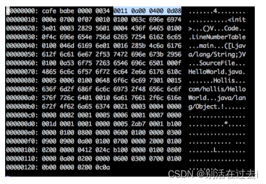 HelloWorld.class文件中的前八个字母是cafe babe,这就是Class文件的魔数(Java中的”魔数”)